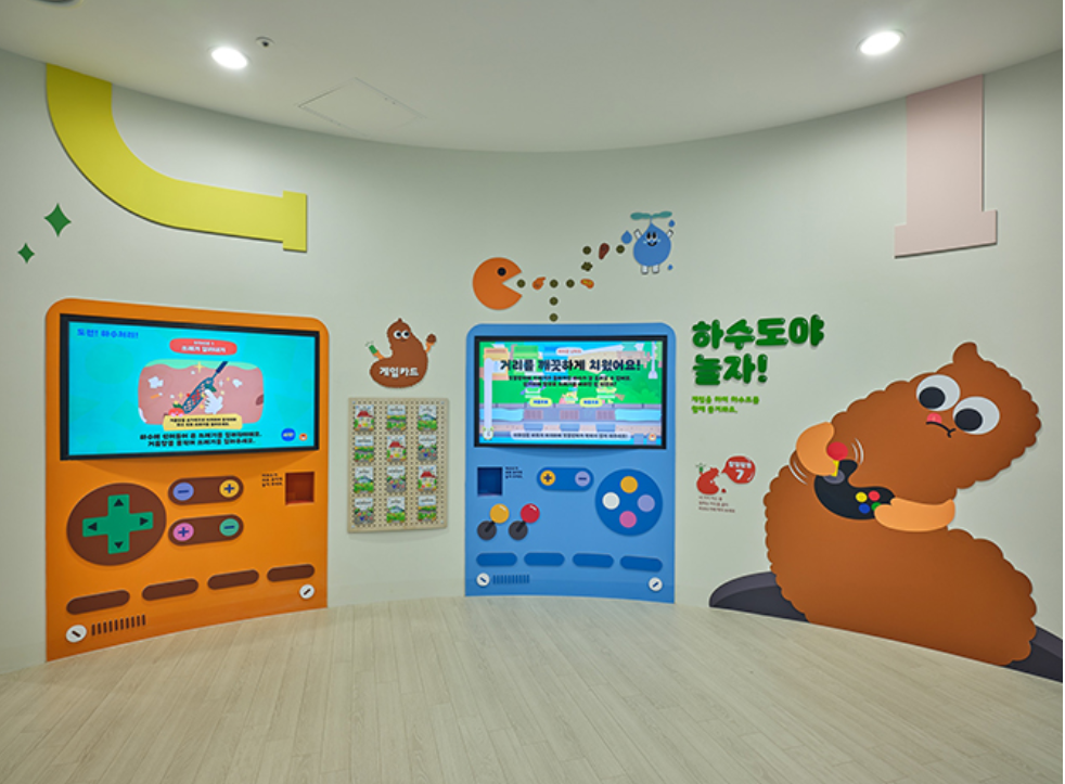 물의 흐름을 따라가는 ‘하수 여행’은 교육적인 동시에 꽤 재미있고, 특히 물을 순환시키는 게임 부스는 초등학생들에게 인기 만점이에요.
